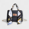 Elegancki Wygląd: Prosty skórzany design połączony z ozdobnym jedwabnym szalem dla luksusowego klimatu.