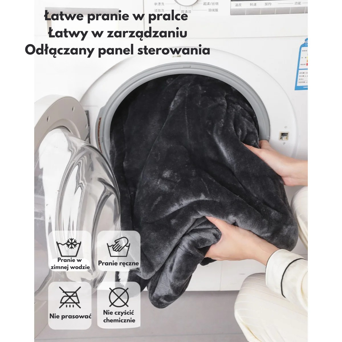 Możliwość prania w pralce – odpinany panel sterowania ułatwia pielęgnację.